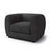 This compact living room ensemble is full of welcomed surprises. The tall arms and low back is an obvious homage to the tuxedo style, but the bulbous shape and smoother lines is a unique twist taking inspiration from the modern era. Underneath the seat cushions are high density foam, making firmer seats than one would expect for the shape that it is in. Finally, soft boucle fabric wraps around the whole piece highlighting a certain air of elegance and quiet class.