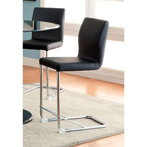 LODIA II Black Counter Ht. Chair, 15 3/4"W X 22"D X 38 1/2"H, 42.6lbs. These padded leatherette chairs create an air of modern elegance with the he...