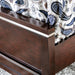 Prominently distinguish your sophisticated bedroom from everyone else's by filling the space with these refined pieces. All eyes will instantly be drawn to the diamond patterned tufting along the headboard of the bed, especially with its sleek and shiny trim, before moving on to admire the chic case goods’ unique handles and silver-finished accents. Complete with subtly angled legs and plenty of storage, this elegant set features a warm and inviting finish to complete its welcoming atmosphere.